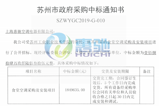 項目名稱:蘇州工業(yè)職業(yè)技術(shù)學(xué)院-食堂空調(diào)系統(tǒng)項目